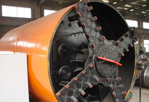 土壓平衡式頂管是以土壓平衡為工作原理的一種頂管施工方法.在工作時,通過大刀盤及仿形刀盤對機頭正面土體的全端面切削,利用主頂設備把機頭向前推進,把切削下來的泥土擠進機頭土倉內,通過調節機頭頂進速度和螺旋輸送機的轉速來控制土倉內的壓力,土倉內的壓力來平衡地下水的壓力和機頭前方的土壓力.